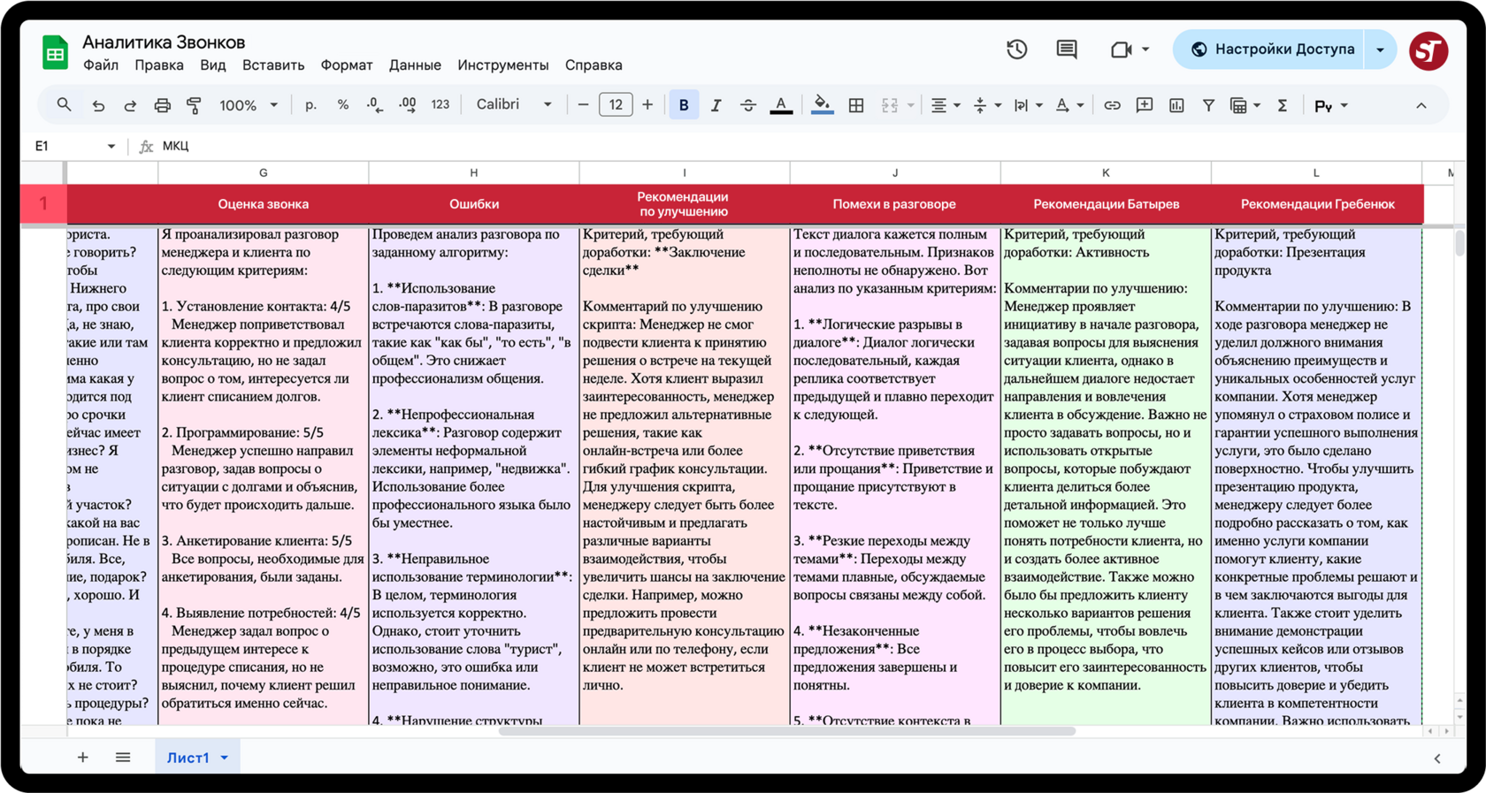 Анализ качества 20 звонков менеджеров по⦁10 критериям уже к⦁следующей летучке